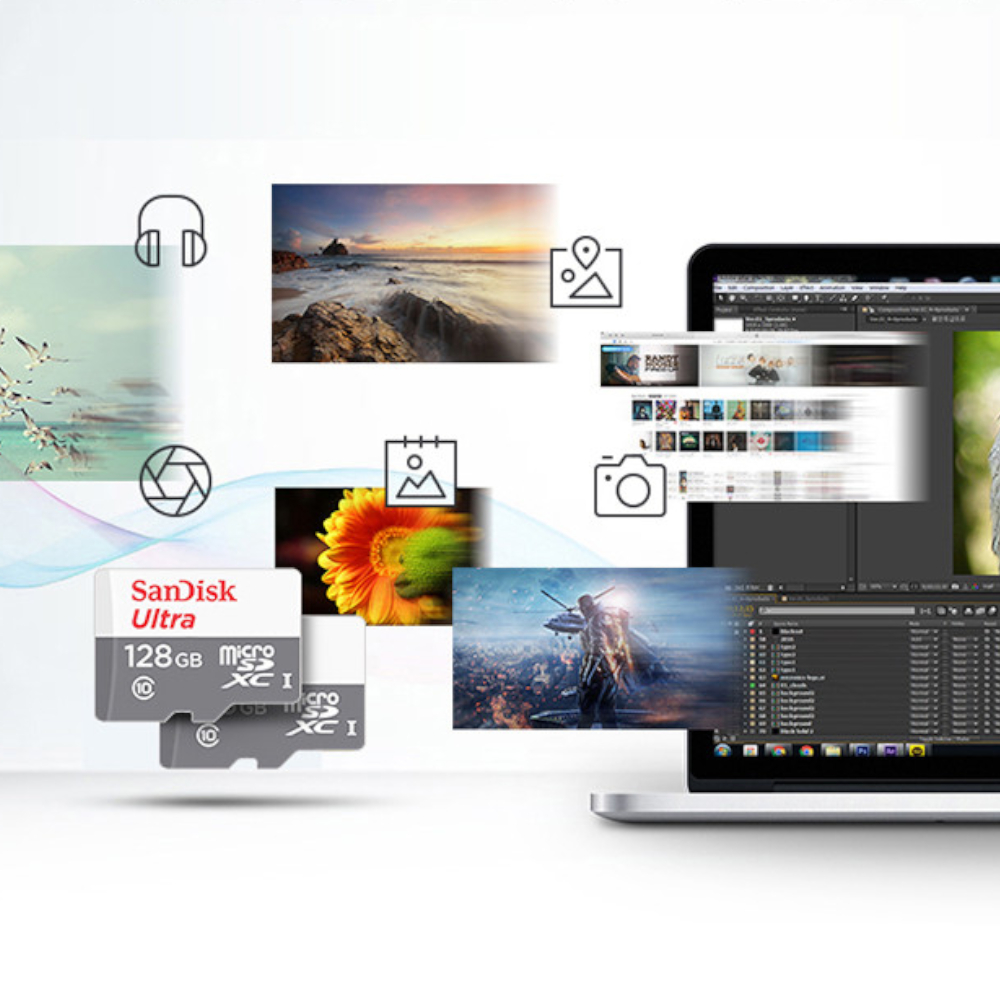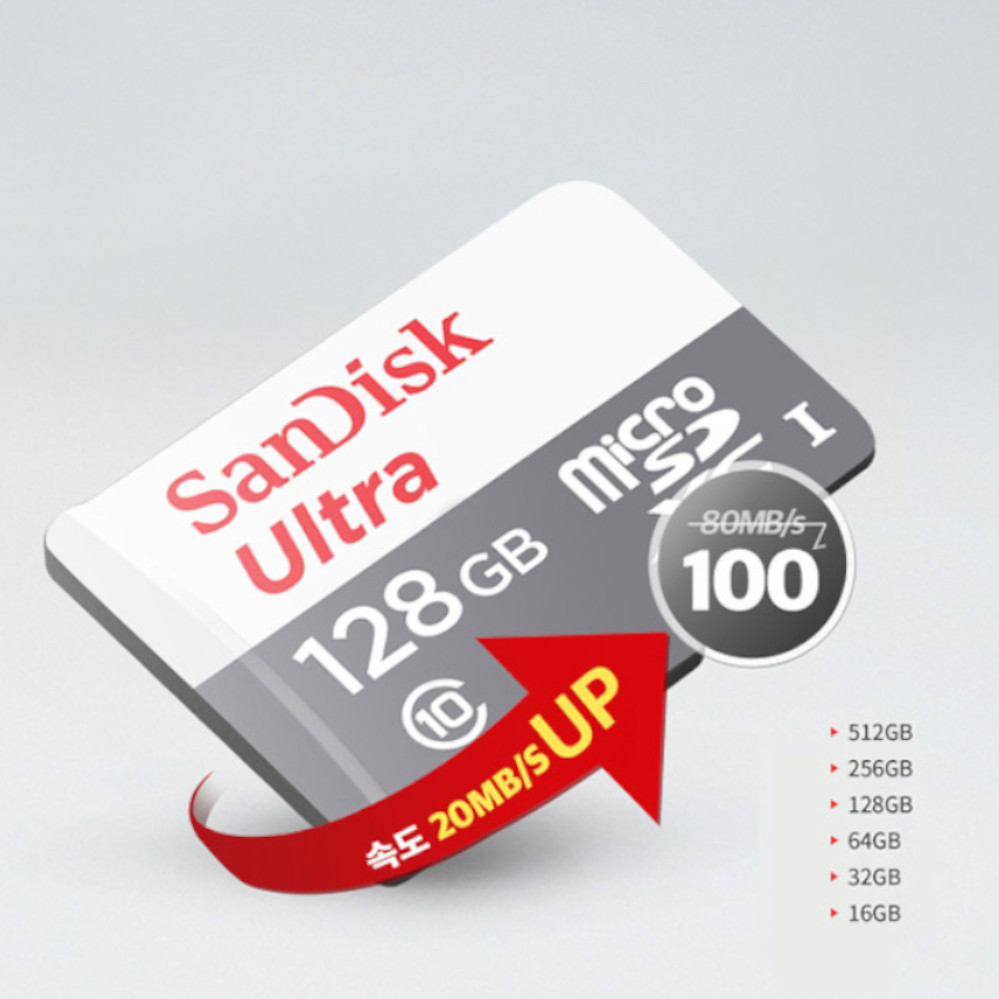 샌디스크 Ultra microSD UHS-I 카드 : 최대 80MB/s의 안정적인 데이터 저장